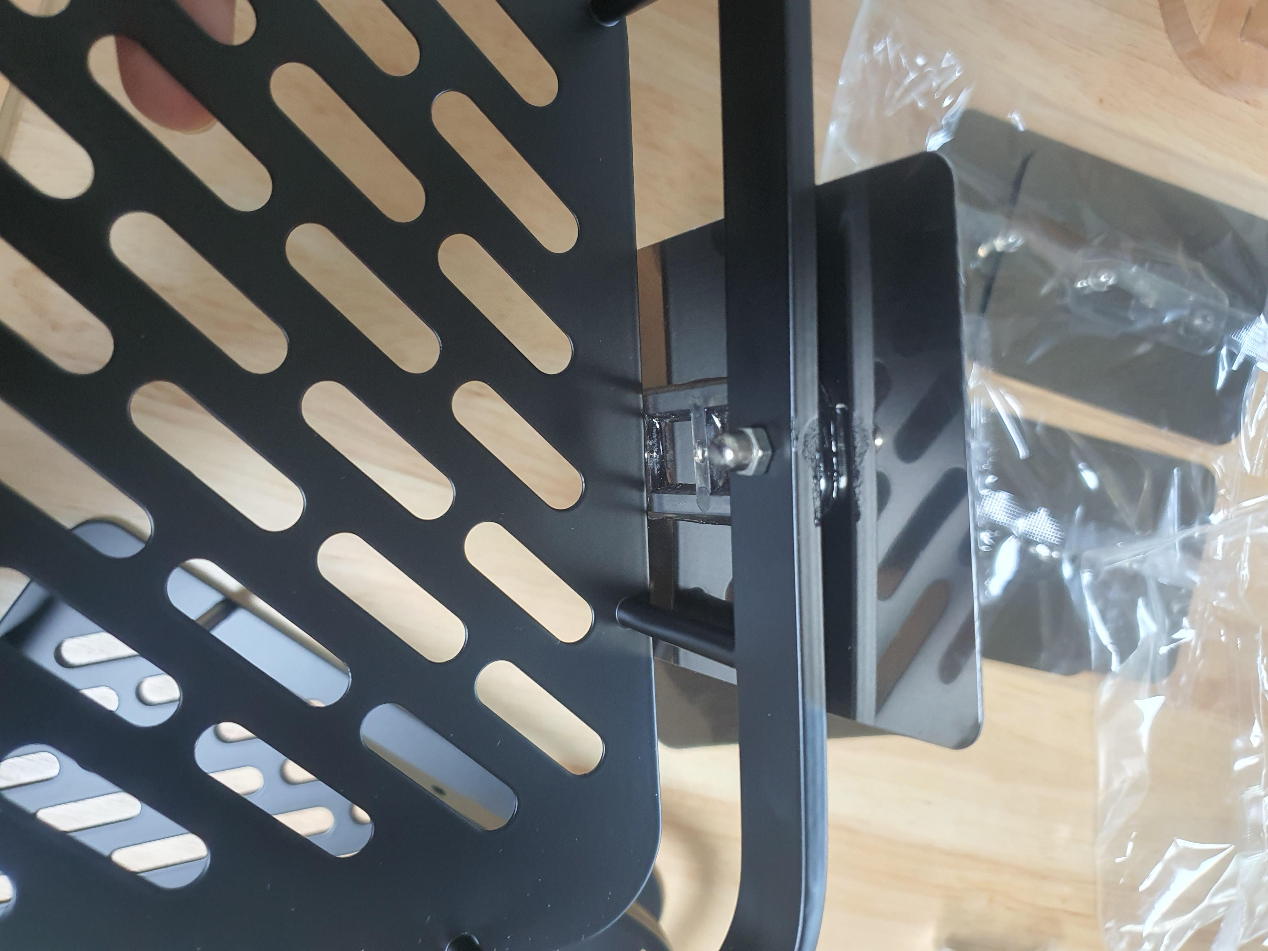 조립방법은 매우 쉽습니다. 선반에 구멍이 있는데 접착하는 제품을 구멍에 나사를 넣고 볼트로 조이는 방식입니다.